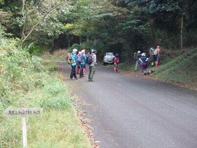 | ▼風穴に到着・・・穴の中をのぞき込んでいます。 | ▼ぶな尾根コースを選択しました。 御神所岩を通るコースは右方だと思います。 |