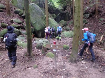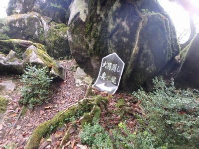 | ▼古処山の山頂部へ急坂を登ります | ▼大将隠し&奥の院分岐 | |