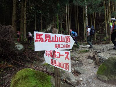 登山口発(9:57)⇒風穴(10:14)⇒ブナ尾根コース分岐(10:39)⇒馬見山(11:35-12:08)⇒宇土浦越(12:47)⇒屏山(13:40)⇒古処山(14:35)⇒古処山キャンプ村(15:30)