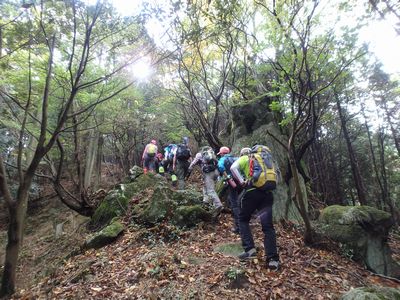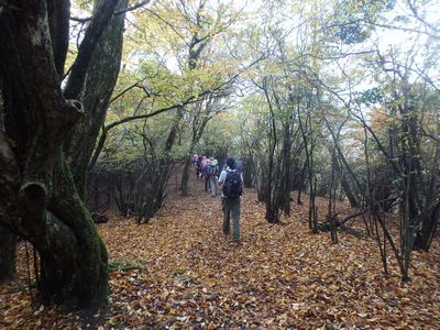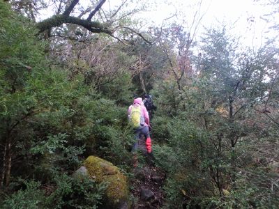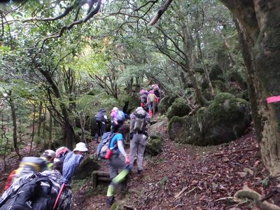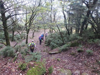| ▼ブナ尾根コースを登っています。 (山頂近くで御神所岩コースと合流します) |