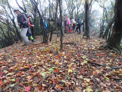| ▼屏山山頂を後にして、古処山へ向います。 | ▼落ち葉の稜線を歩きます♪ | |
