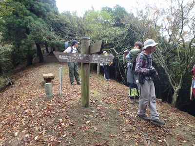 | ▼古処山山頂にて | ▼馬攻めの広場を通過して古処山キャンプ場へ 夏にはオオキツネノカミソリが見られるそうです。 |