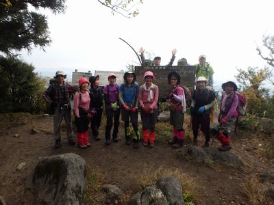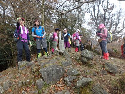 | ▼ツゲの原始林を見ながら古処山山頂を目指します。 | ▼石祠が祀られる古処山山頂へ到着 | |