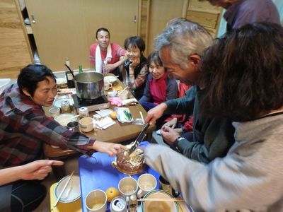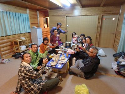 | ▼鍋を囲んで懇親会(コテージ泊) 嘉穂のスーパーまで車で約20分、鍋材料の調達へ |