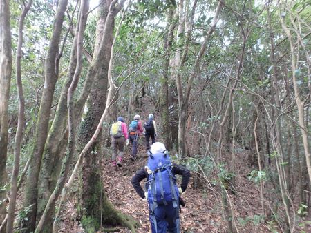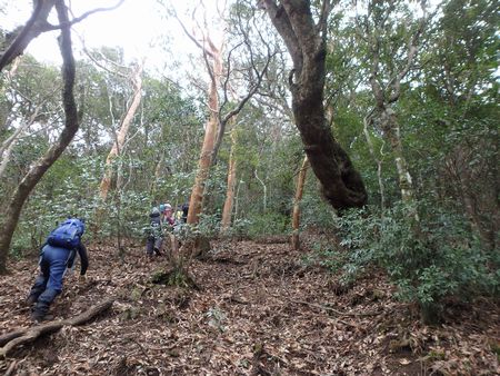 | ▼樹林帯を登ります。 | ▼北方へ派生する稜線に上がりました。 | |