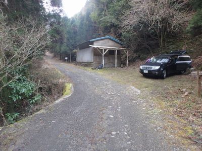 | ▼三股町の長田峡公園に集合(5:50) 先に柳岳下山口の作業小屋に車を置きに行きます。 |