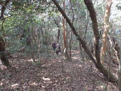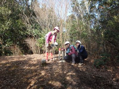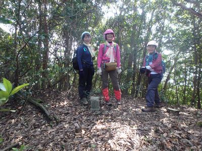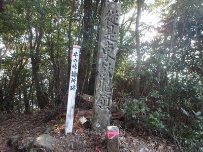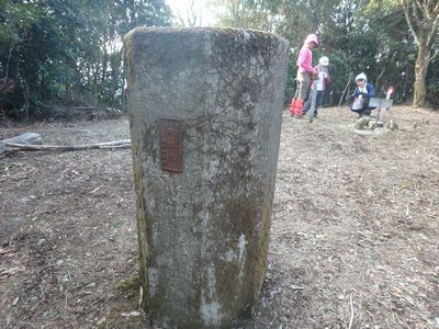 | ▼牛の峠の論所跡(今回の縦走路)です。 | ▼天測点の立つ、牛の峠山頂 ここから、三股町と日南市の行政境(稜線)を伝い柳岳へ |