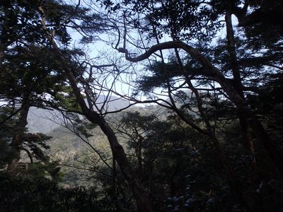 | ▼また々面白い木〜向こう側の木が見えます | ▼痩せ尾根ヶ所から都城市街地が見えます。 | |