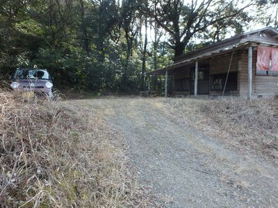 ▼牛の峠、林道沿いの作業小屋から林道を歩きます。 | |