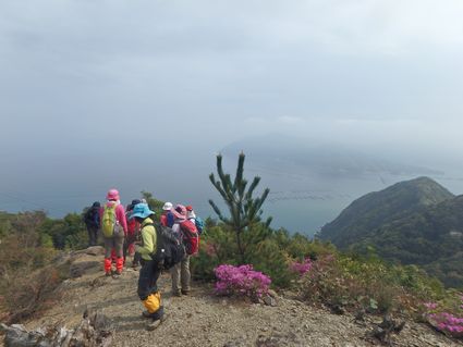 | ▼ツツジ咲く第3展望所で小休止 | ▼第3展望所から米水津湾の眺望を楽しみます。 | |