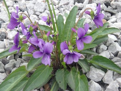| ▼「空の地蔵尊」展望台から眼下の大海原を堪能 | ▼空の地蔵尊に咲くスミレ | |