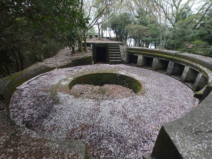| ▼駐車場より歩いて画像の石段を登ると砲台跡に到着 | ▼大きな砲台が設置されていたようです(3門有り) | |