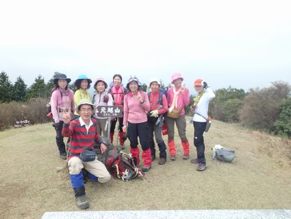 | ▼元越山の広い山頂で昼食タイムです。 | ▼昼食後さあ〜次のピーク、色利山を目指しましょう。 | |