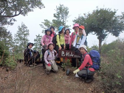 | ▼林道に設置された標識 | ▼色利山(552.3m)に到着しました。 | |