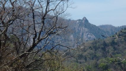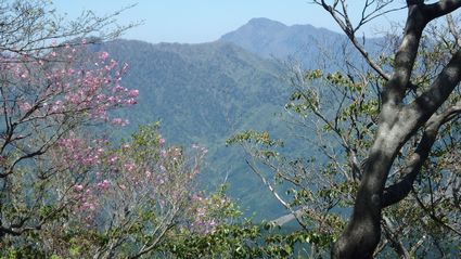 | ▼ミツバツツジもまだ見られました。 | ▼大崩山のワク塚群が指呼の間に見えます♪ | |