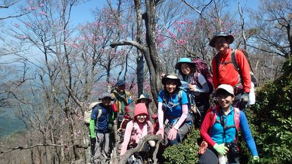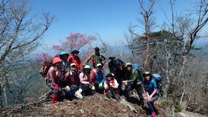 | ▼桑原山山頂のメンバーの方々です | ▼桑原山山頂で昼食休憩後アケボノツツジを愛でながら下山です。 | |