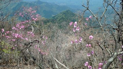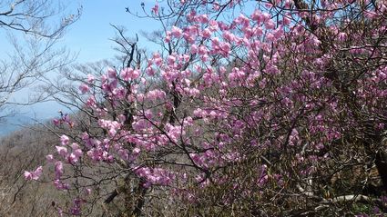 | ▼稜線に咲くミツバツツジ | ▼稜線に咲くアケボノツツジ | |