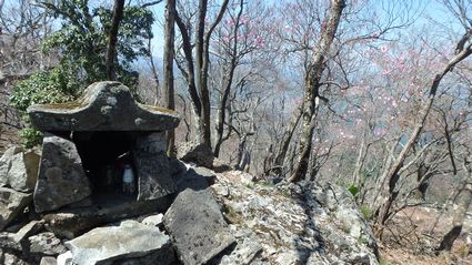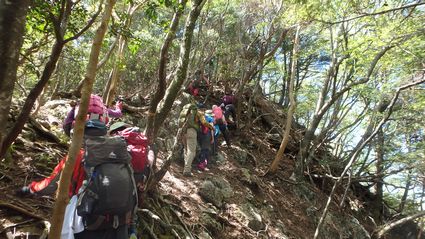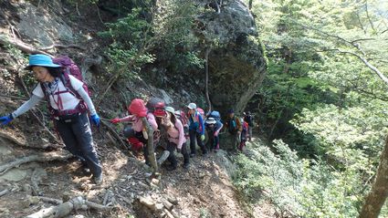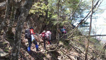 | 痩せ尾根と巨石を縫いながら歩きアケボノツツジを愛でる山歩きでした。 長丁場のコースなのである程度脚力が要求されます。 |