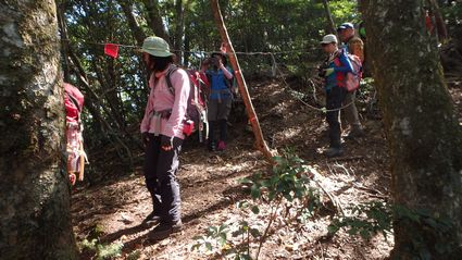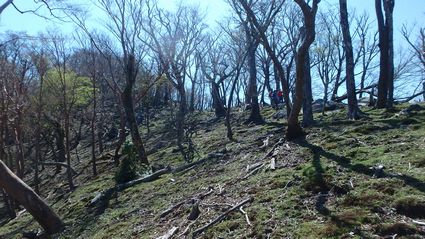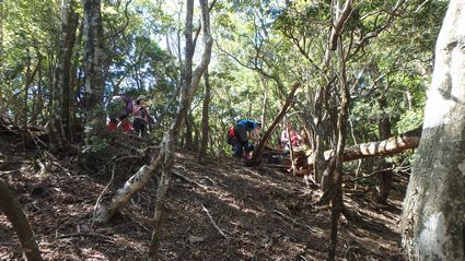 | ▼宮崎&大分県境伝いに下山します。 | ▼登っていますが下山中です。 | |