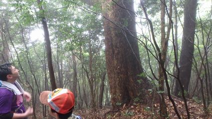 | ▼広い尾鈴山の山頂です♪ | ▼山頂で休憩後、長崎尾へ向います・・・山頂の巨木です | |