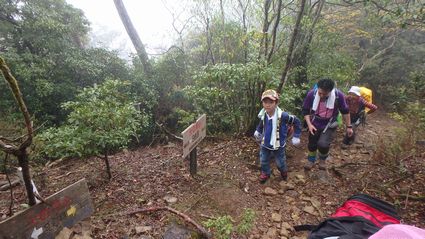 | ▼尾根筋の登山道を登っています。 | ▼九合目に到着です♪ | |