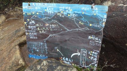 駐車場発(7:38)⇒登山口(7:54)⇒尾鈴山山頂(9:45−9:55)⇒長崎尾(11:05-11:25)⇒分岐点(11:38)⇒林道(12:31)⇒駐車場(12:51)