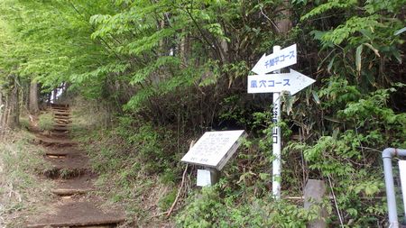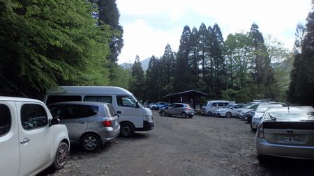 | ▼手前の広場も満車状態の北谷登山口駐車場 | ▼アケボノツツジの見られる風穴コースを登ります | |