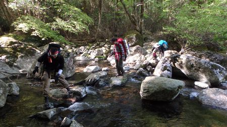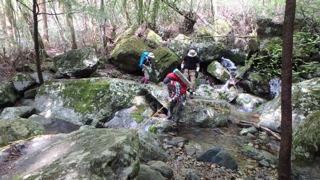 | ▼何度か小川を飛び石伝いに渡渉します。 ※雨で増水時は通過困難になるでしょう |