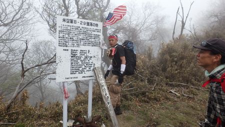 | ▼アメリカ軍のB29墜落現場を通過します。 B29爆撃機の残骸が残っています。 |