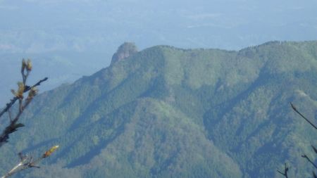 | ▼親父山から35分で黒岳(1578m)へ到着しました。 | ▼黒岳から北方に特異な容の、筒ガ岳(1293m)が見えます。 下山後に読図で松が鼻から筒ガ岳を目指します。 左下が松が鼻の頂部でしょうか? |