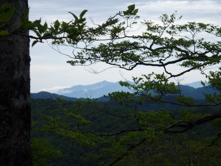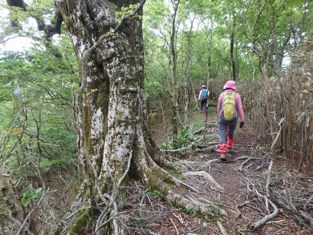 | ▼霧立越の稜線奥に見える山塊は? | ▼自然林が残されブナの巨木も多い | |