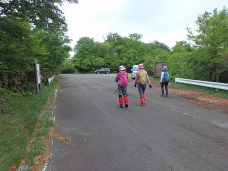 | ▼所々で眺望の開ける楽しいルートです。 | ▼峰越(県境)の広場に到着しました | |