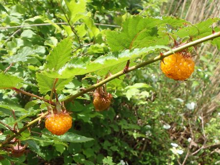 | ▼登山道脇に木イチゴがなっています。 | ▼熟れたグミは甘酸っぱい!? | |