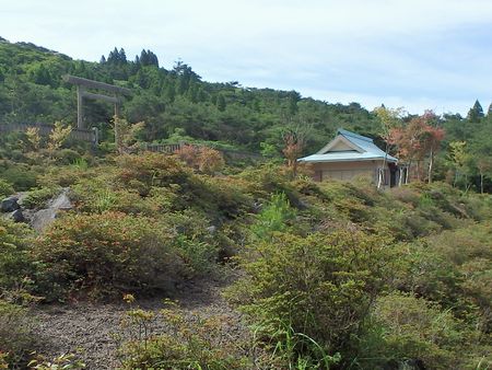 | ▼ヤマツツジは見頃です | ▼高千穂河原の古宮跡に到着しました。 一息入れて、高千穂峰に登ります。 |
