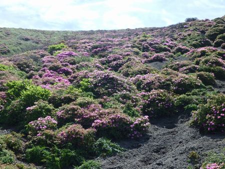| 高千穂峰山頂のミヤマキリシマは最盛期を過ぎていました・・・今年のピークは5月下旬頃だったのでしょう。 皇子原の矢岳登山口から高千穂河原までは踏み跡も有り自然林帯の中を気持ちよく歩けます。 今回、高千穂峰登山口駐車場と矢岳登山口駐車場をつなぐルートの確認も出来ましたので周回コースが組めますね! |