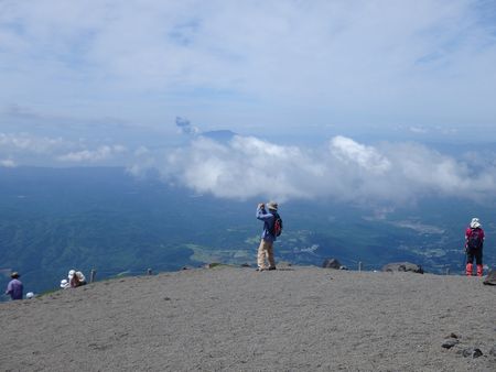 | ▼噴煙を上げる桜島です(画像中央) | ▼昼食には早いので下山します・・・振り返る山頂方向 | |