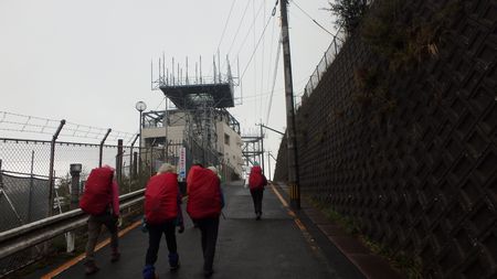 | ▼車道へ出ました・・・無線設備やレーダドームが山頂部を占有 | ▼展望の良い三郡山山頂(936m)です | |
