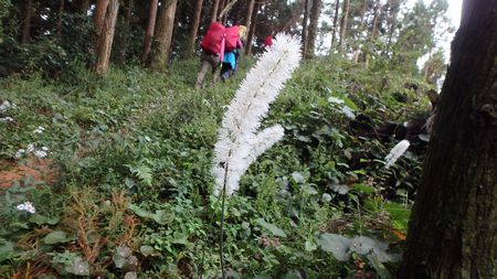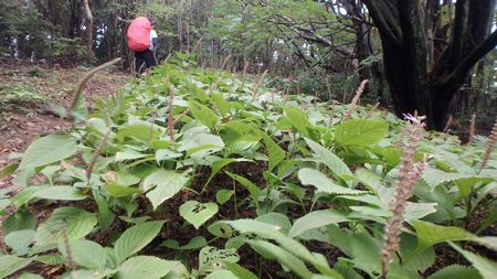 | ▼見返り草の群生地を通過します。 | ▼前砥石山山頂より望む宝満山・四王寺山・・・後方に脊振山 | |