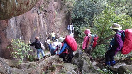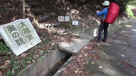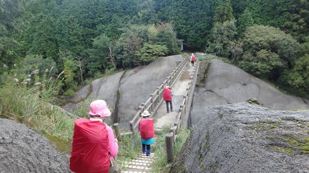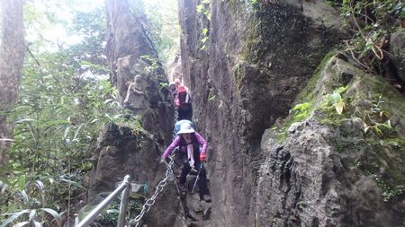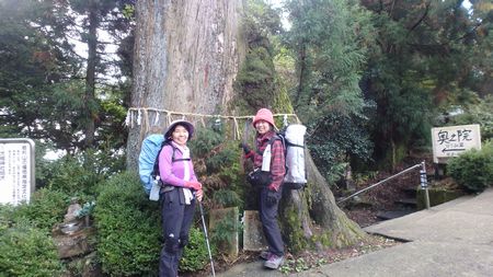 | ▼太租神社上宮の巨杉脇から奥の院へ下ります | ▼はさみ岩で渋滞中です | |
