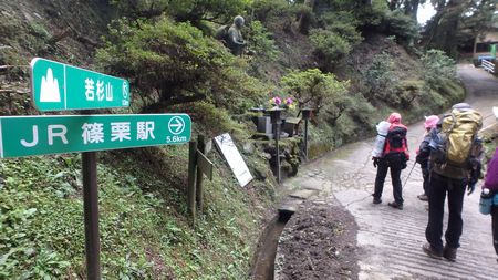 キャンプ場発(6:25)⇒水場経由縦走路(6:39)⇒仏頂山(6:42)⇒頭巾山(7:19)⇒三郡山(7:40)⇒前砥石山(8:52)⇒砥石山(9:10)⇒鬼岩谷山(9:38)⇒ショウケ越(10:10)⇒若杉山(11:10-11:35)⇒太租神社上宮-奥の院(12:10)⇒林道出合(13:03)⇒佐谷神社(13:12)・・・県道沿いのコンビニ(ファミマ)でタクシーを呼んで竈門神社へ戻る