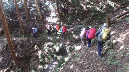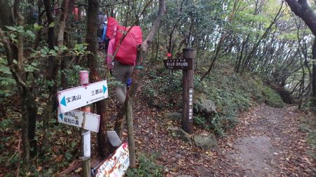 | ▼難所ガ滝分岐を左に見て三郡山へ向います。 | ▼縦走路から外れて三郡山手前の頭巾山へ寄ります | |