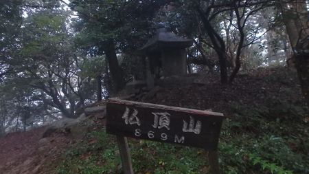 | ▼水場から縦走路へ上がり、仏頂山へ向います。 | ▼縦走路を右へ上がると直ぐに仏頂山(869m)山頂です。 | |