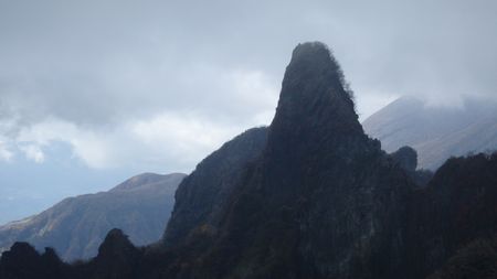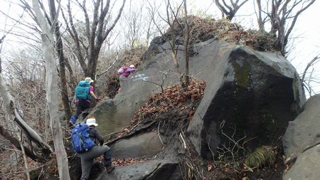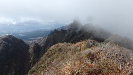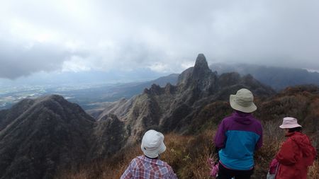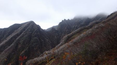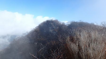 | ▼東峰で休憩後、大戸尾根を下山します | ▼下山時はガスが晴れて天狗岩がきれいに見えます | |
