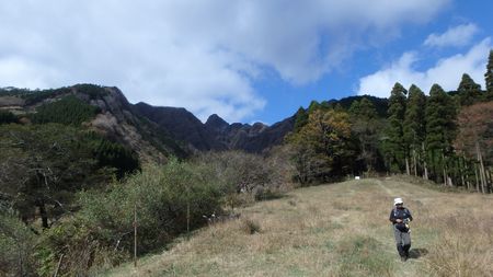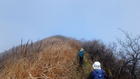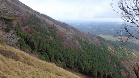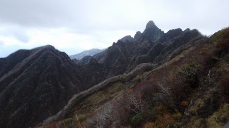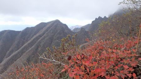 | ▼東峰最短ルートの東尾根を眺望 紅葉の時期は緑と赤のコントラストがきれいだったことでしょうね |
