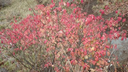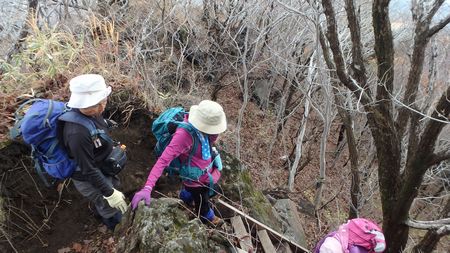 | ▼紅葉はマユミでしょうか? | ▼岩場の木製ハシゴを下ります | |