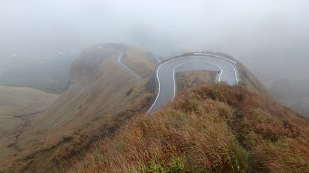 | ▼阿蘇のミルクロードから、ラピュタの道を望む ガイド本で見る雲海に浮かぶラピュタ道は圧巻です |