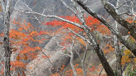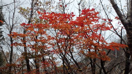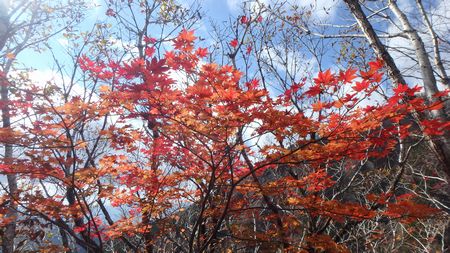 | ▼紅葉越しに天狗岩を望む | ▼紅葉を愛でながら大戸尾根を下ります | |