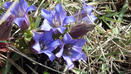 | ▼登山届けの記帳所・ポストを通過 | ▼牧場に咲くリンドウ | |