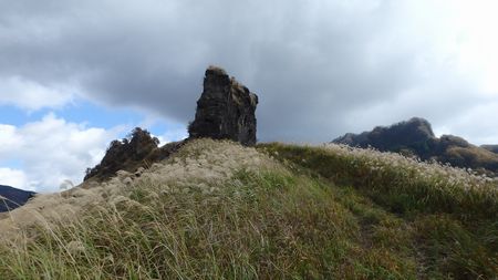 阿蘇五岳の東端に屹立する天狗岩を眺望(熊本県高森町)