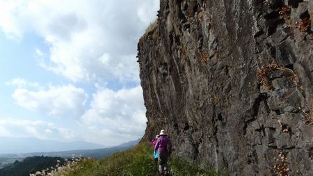 | ▼らくだ山のマグマ岩 | ▼左記のマグマ岩頂部は行けそうです マグマの岩壁伝いで散策ルートが有ります。 |